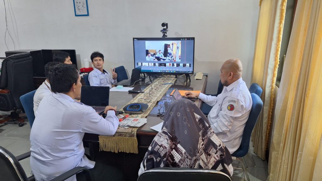 Foto Ketua Bawaslu Sulteng, Nasrun, bersama Anggota Bawaslu Sulteng, Dewi Tisnawaty, didampingi jajaran sekretariat saat memimpin Rapat melalui Zoom meeting di ruangannya. Rabu (27/08/2025)[/caption]