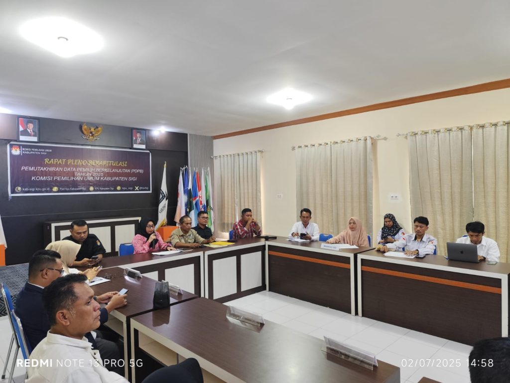 Sigi, Bawaslu Sulteng — Anggota Bawaslu Provinsi Sulawesi Tengah, Dewi Tisnawaty, melaksanakan monitoring pengawasan rapat pleno rekapitulasi Pemutakhiran Data Pemilih Berkelanjutan (PDPB) yang digelar oleh KPU Kabupaten Sigi, Rabu (02/07/2025).