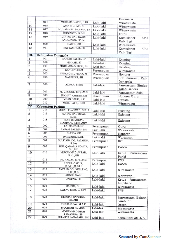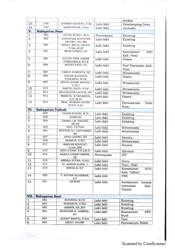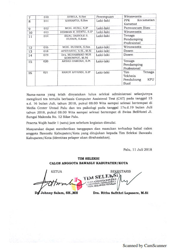 Pengumuman Hasil Seleksi Administrasi Calon Anggota Bawaslu Kabupaten/Kota Zona I