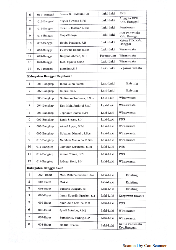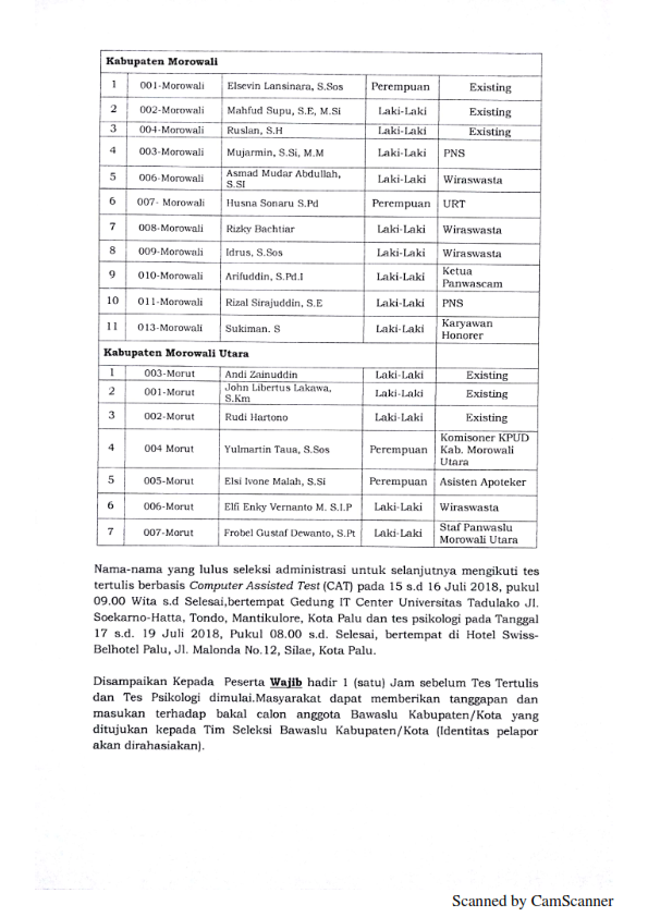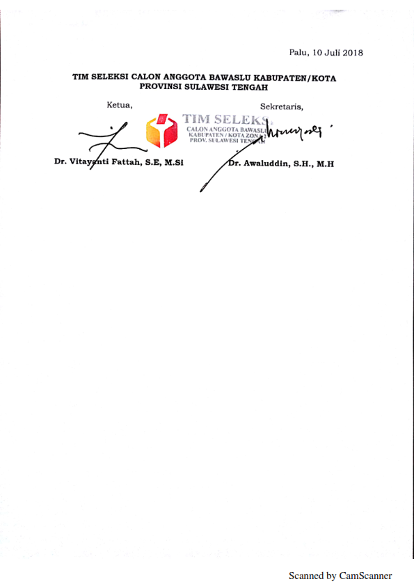 Pengumuman Hasil Seleksi Administrasi Calon Anggota Bawaslu Kabupaten/Kota Zona II